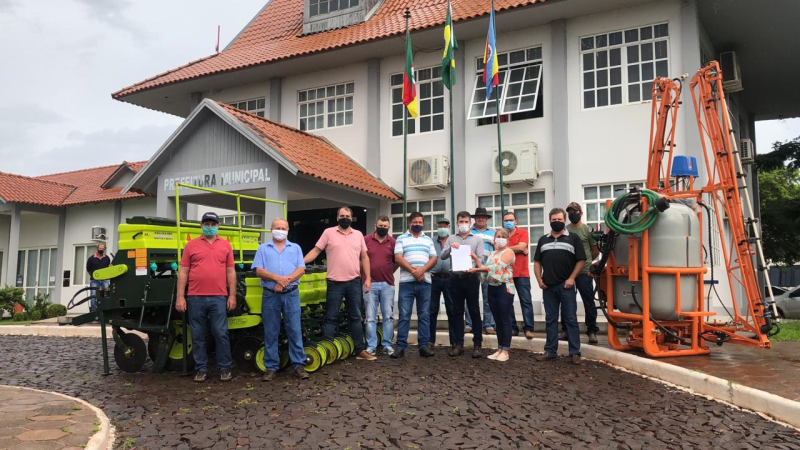 Na tarde da terça-feira, dia 12, o Executivo Municipal recebeu os senhores Augusto de Pelegrin, assessor do Deputado Federal Márcio Biolchi e os sócios do Grupo de Produtores da Sede para a realização de entrega de uma plantadeira, no valor de R$54.990,00 e um pulverizador, no valor de R$ 22.470,00 provindos de uma Emenda Parlamentar. Ainda está prevista a chegada de mais equipamentos, que serão entregues posteriormente aos demais grupos. Agradecemos ao Deputado Federal Márcio Biolchi e ao MDB que possibilitaram essa emenda em prol dos agricultores de nosso Município.