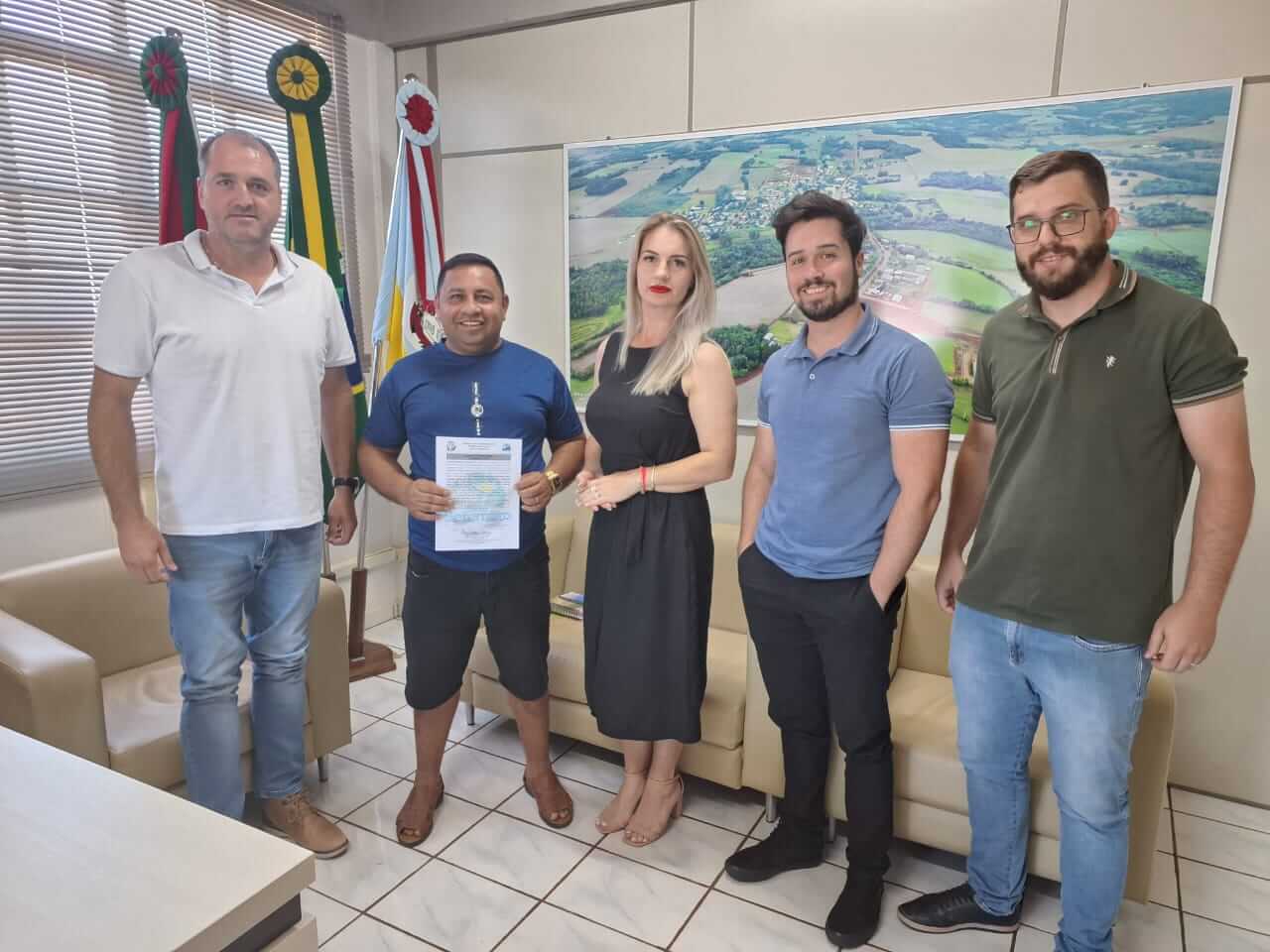 Estiveram presentes no Gabinete para o ato de assinatura: o Prefeito Municipal Márcio Politowski, a Secretária Municipal de Saúde e Assistência Social Ana Paula Tiburski, o Secretário Municipal de Administração e Planejamento Jason Paluchowski, o Diretor do Departamento de Engenharia Allison Irassoquy de Freitas e o Representante Legal da empresa Brunel Prestes Construções Ltda Sr. José Oldair da Rosa.